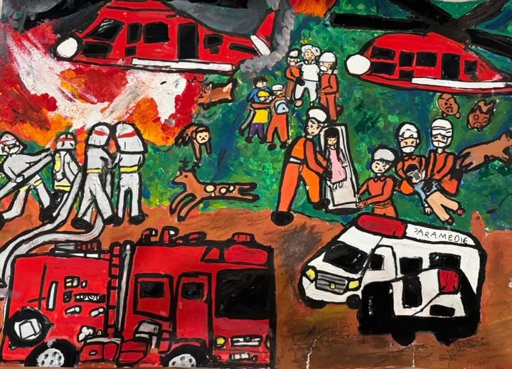 大阪市防火・防災図画コンクール 2025.12.03 作品紹介 Tweet Share Hatena Pocket RSS feedly Pin it この記事のタイトルとURLをコピーする 令和7年度「大阪市防火・防災図画コンクール」にて、アトリエ和央の生徒 K.Hさん(小5) が全3,871点の中から「努力賞」を受賞しました。大きな山火事の中で活躍する救助隊や消防士、逃げ惑う動物たちの姿が丁寧に描かれ、“人と動物の共存”が伝わる素晴らしい作品です。Hさん、本当におめでとうございます! Tweet Share Hatena Pocket RSS feedly Pin it この記事のタイトルとURLをコピーする 大阪市防火・防災図画コンクール 前の記事