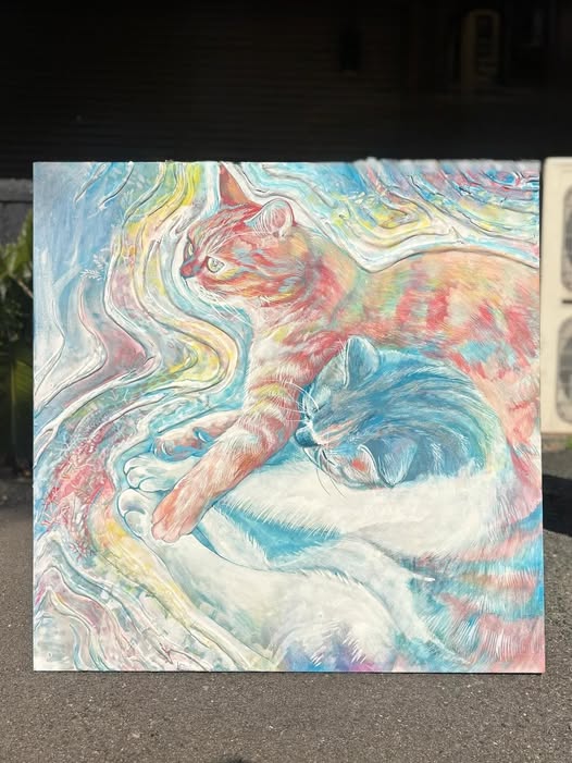 満ちる 2026.02.13 作品紹介 Tweet Share Hatena Pocket RSS feedly Pin it この記事のタイトルとURLをコピーする アトリエ和央講師、木本さきの作品です。「満ちる」 size 72×72 since 2025念布、水千絵具、岩絵具、胡粉、盛り上げ粉、スキームV、猫[作者コメント]猫の動きと水の流れを重ね、境界があいまいになる瞬間を描きました。形は溶け、色は流れ、見る人の心の中で自由に動き続ける存在であってほしいと思っています。木本さき Tweet Share Hatena Pocket RSS feedly Pin it この記事のタイトルとURLをコピーする リカちゃんのON/OFF展 前の記事 いただいたお花を 次の記事