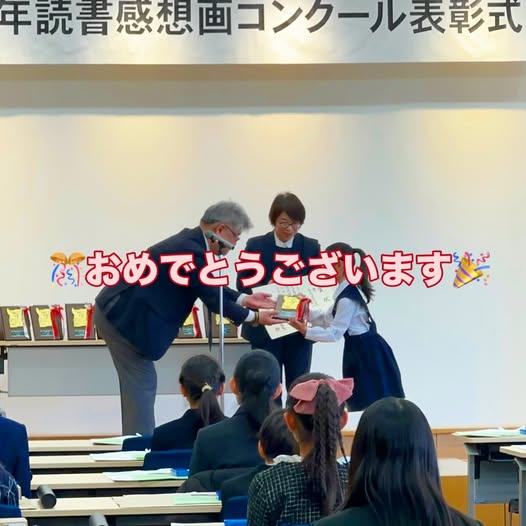 第42回 大阪府青少年読書感想画コンクールにて、H.Yさん(小学3年生)が、15,708点の応募作品の中から「優秀賞」に選ばれ、私学会館での表彰式にて授与されました。