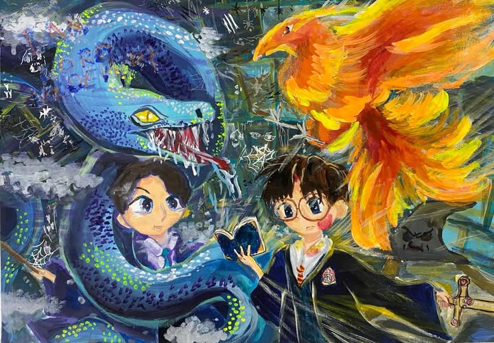 『ハリー・ポッターと秘密の部屋』よりトム・リドルとハリーの対峙の瞬間を描いた一枚。